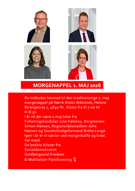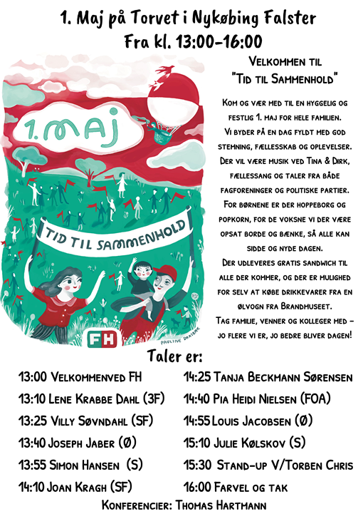 Alle medlemmer – og gerne familie – er mere end velkomne. Det bliver en rigtig god 1. maj med underholdning for både børn og voksne: hoppeborg til børnene samt spændende talere fra både lokale politikere og valgte fra fagbevægelsen.